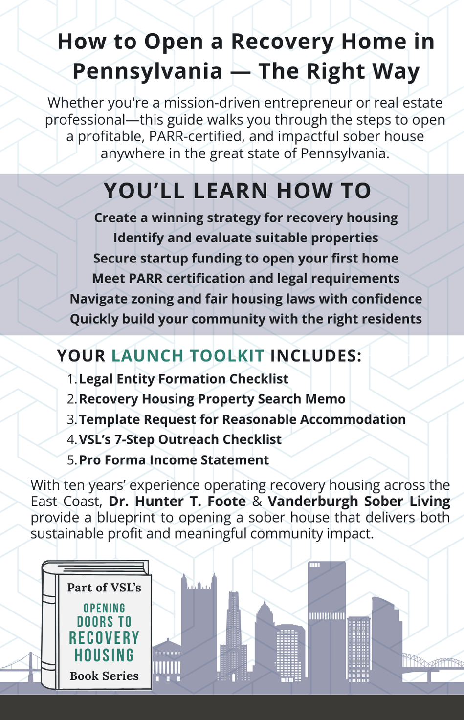 Beyond getting a home open, this book equips you to build something that endures. You’ll learn how to create a safe, supportive recovery environment while balancing mission with sustainability—allowing you to strengthen communities, support long-term recovery, and maintain an operation that lasts.