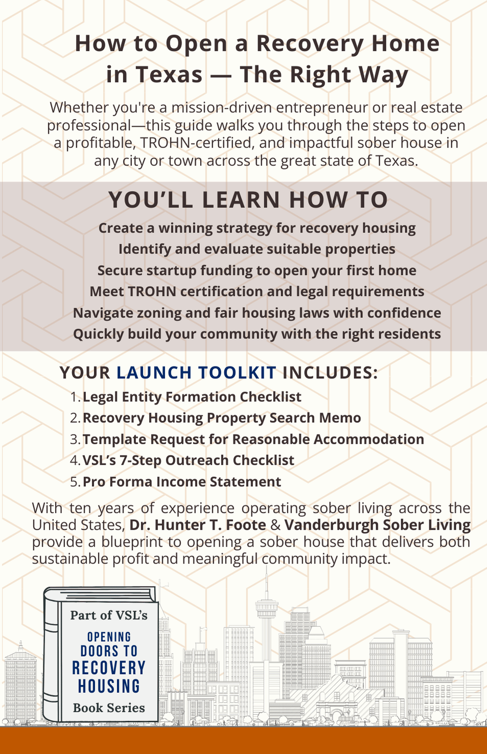 Beyond getting a home open, this book equips you to build something that endures. You’ll learn how to create a safe, supportive recovery environment while balancing mission with sustainability—allowing you to strengthen communities, support long-term recovery, and maintain an operation that lasts.